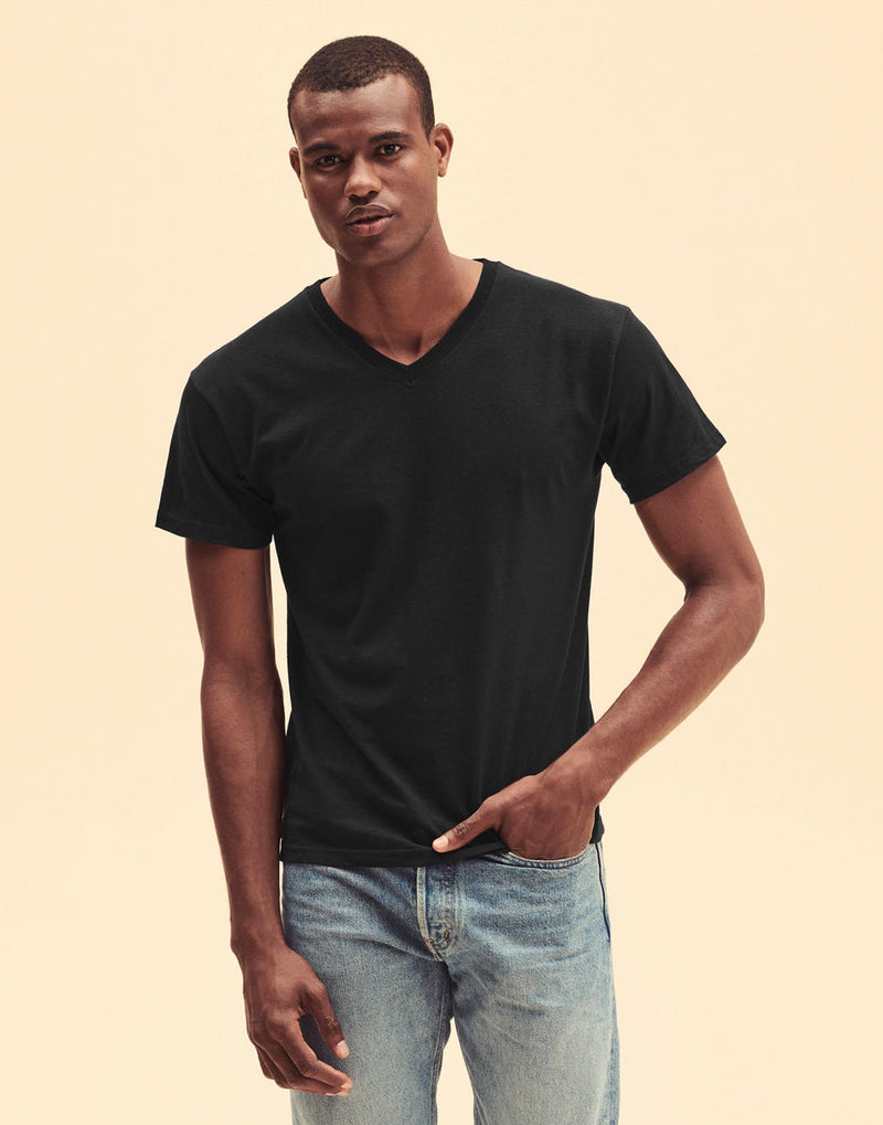 The Original V-Neck T-Shirt from Fruit of the Loom is a versatile staple for any wardrobe. With its classic V-neck and comfortable fit, it's a popular everyday piece. The T-shirt is made from 100% cotton for a comfortable fit.