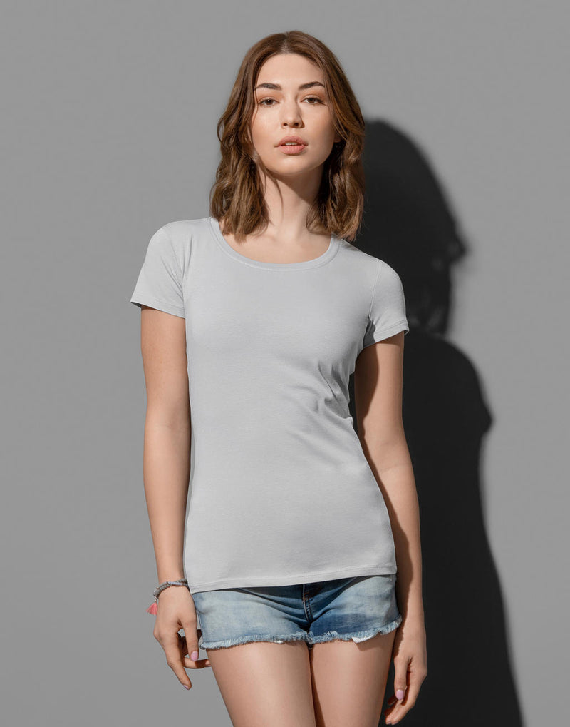 Die Claire Crew Neck ist ein modernes und bequemes T-Shirt für Damen. Mit einem weiteren Halsausschnitt und einem schmalen Rippkragen ist es nicht nur stylisch, sondern auch angenehm zu tragen. Das T-Shirt besteht aus 95% ringgesponnener und gekämmter Baumwolle und 5% Elasthan, was für eine optimale Passform sorgt. Bei der Farbe Grey Heather besteht der Stoff aus 82% Baumwolle, 14% Viskose und 4% Elasthan.