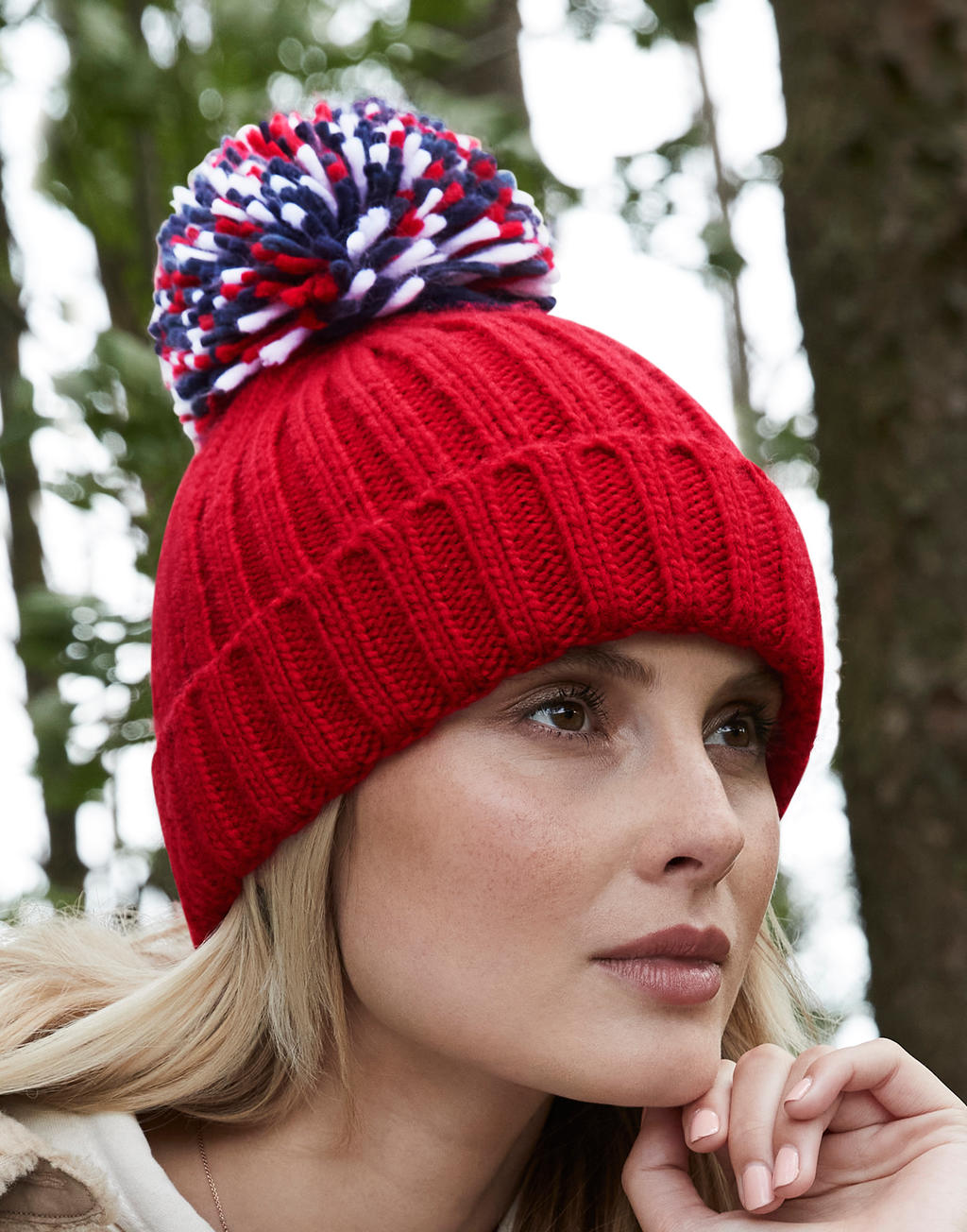 Ein besonderes Highlight ist die extra große Quaste, die dem Beanie einen verspielten Touch verleiht. Der breite Umschlag bietet ausreichend Platz für individuelle Veredelungen wie Druck oder Stick und macht das Hygge Beanie zu einem idealen Werbemittel für Unternehmen oder Vereine.