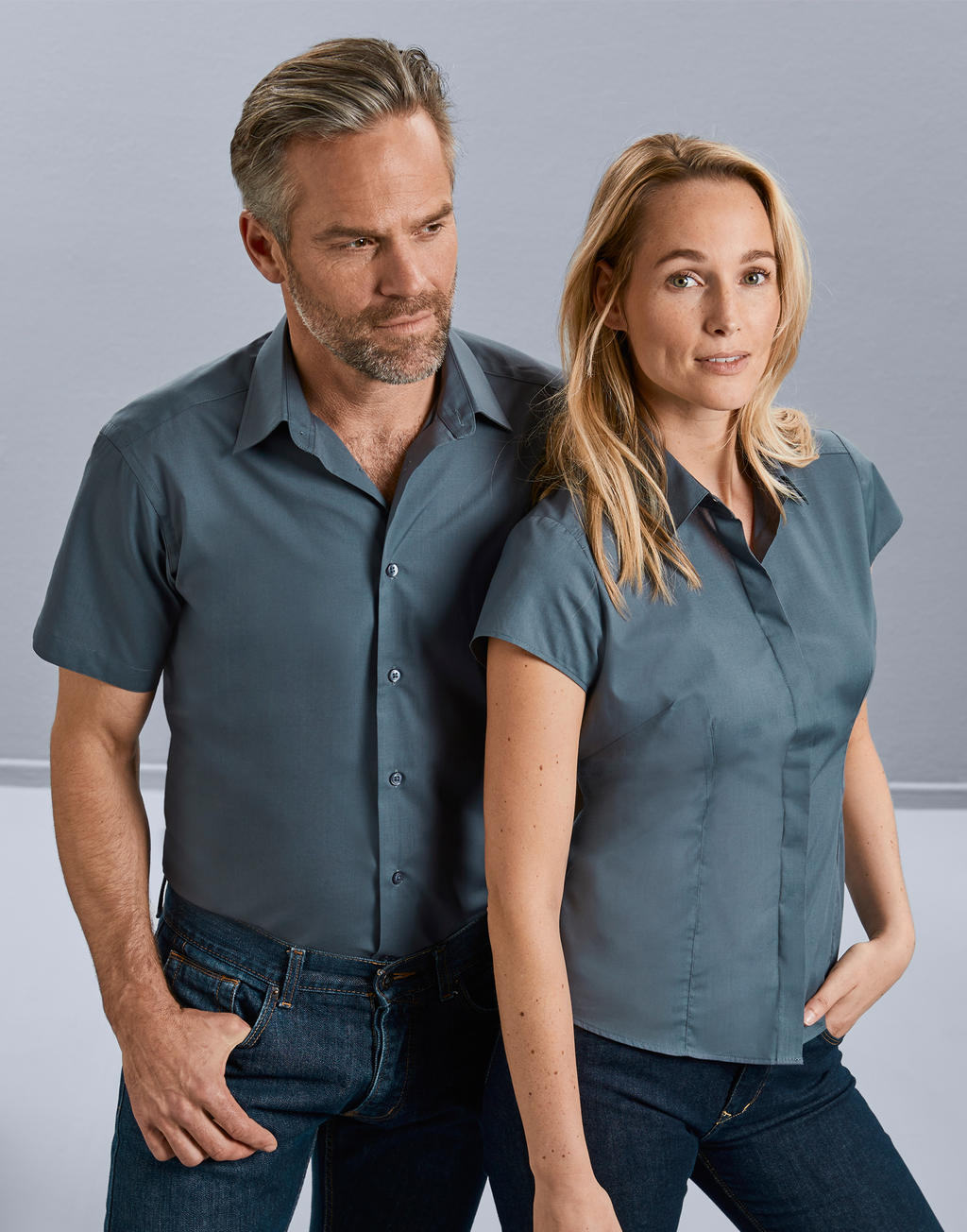 Das Shirt besteht aus einer Mischung aus 65% Polyester und 35% Baumwolle, was sowohl für Komfort als auch für Strapazierfähigkeit sorgt. Die Popeline-Qualität des Stoffes verleiht dem Shirt einen edlen Look und macht es gleichzeitig pflegeleicht.