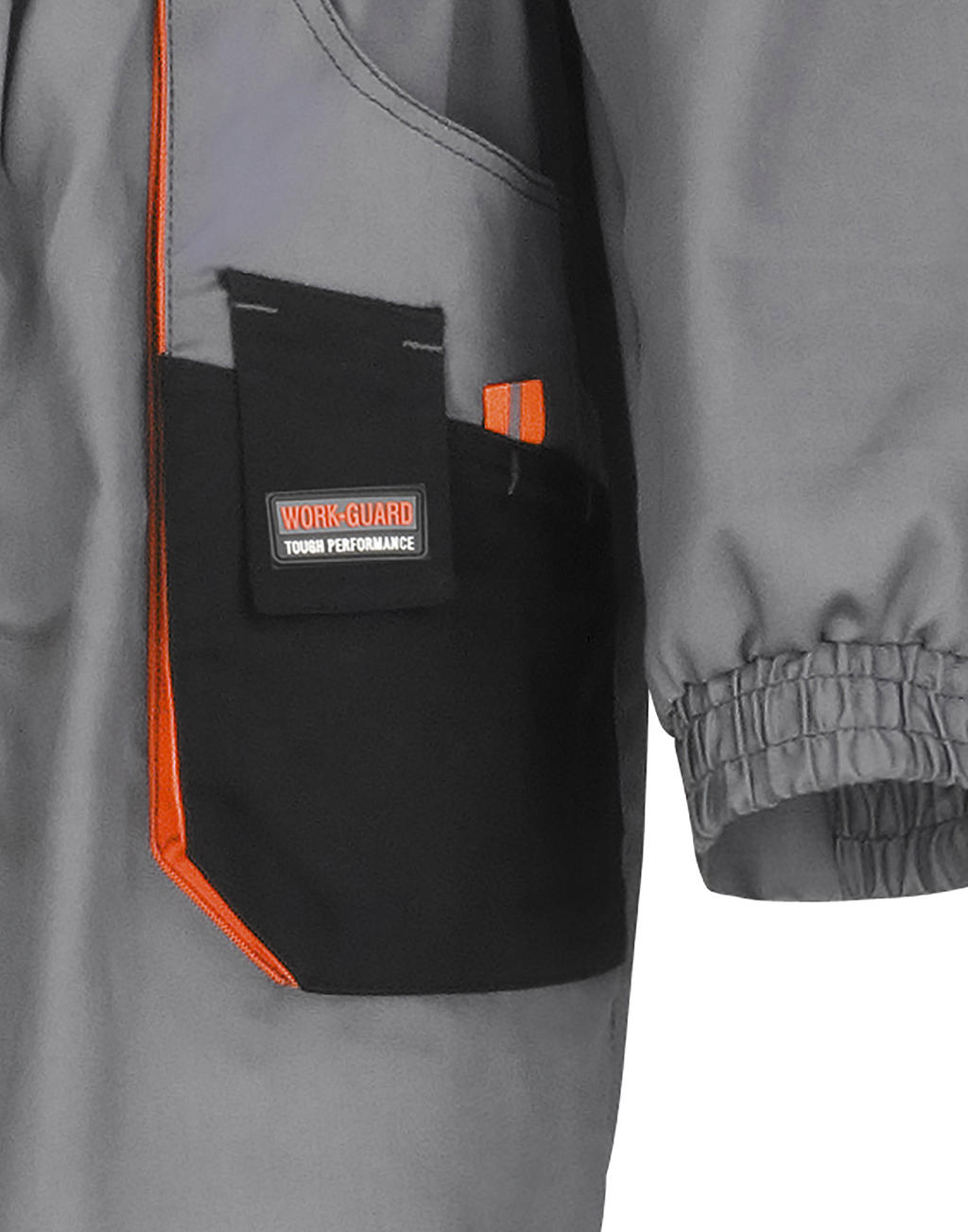 Die elastischen Ärmelbündchen sorgen für eine gute Passform und verhindern das Eindringen von Schmutz oder Feuchtigkeit. Die Coverall verfügt über diverse Cargo-Taschen mit reflektierenden Klettverschluss-Ziehern, die nicht nur praktisch sind, sondern auch für bessere Sichtbarkeit sorgen. Ein D-Ring ermöglicht das Anbringen von Werkzeugen oder anderen Accessoires.