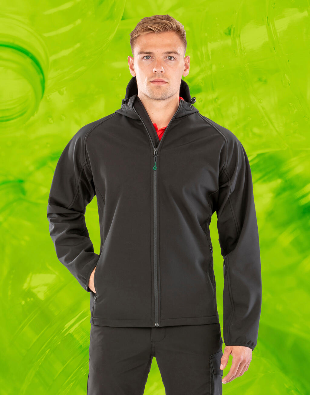 Die Men's Recycled 3-Layer Hooded Softshell Jacke von Result Genuine Recycled ist die perfekte Wahl für umweltbewusste Kunden, die Funktionalität und Nachhaltigkeit schätzen. Mit einer Grammatur von 290 g/m² bietet diese Jacke die ideale Kombination aus Leichtigkeit und Schutz.