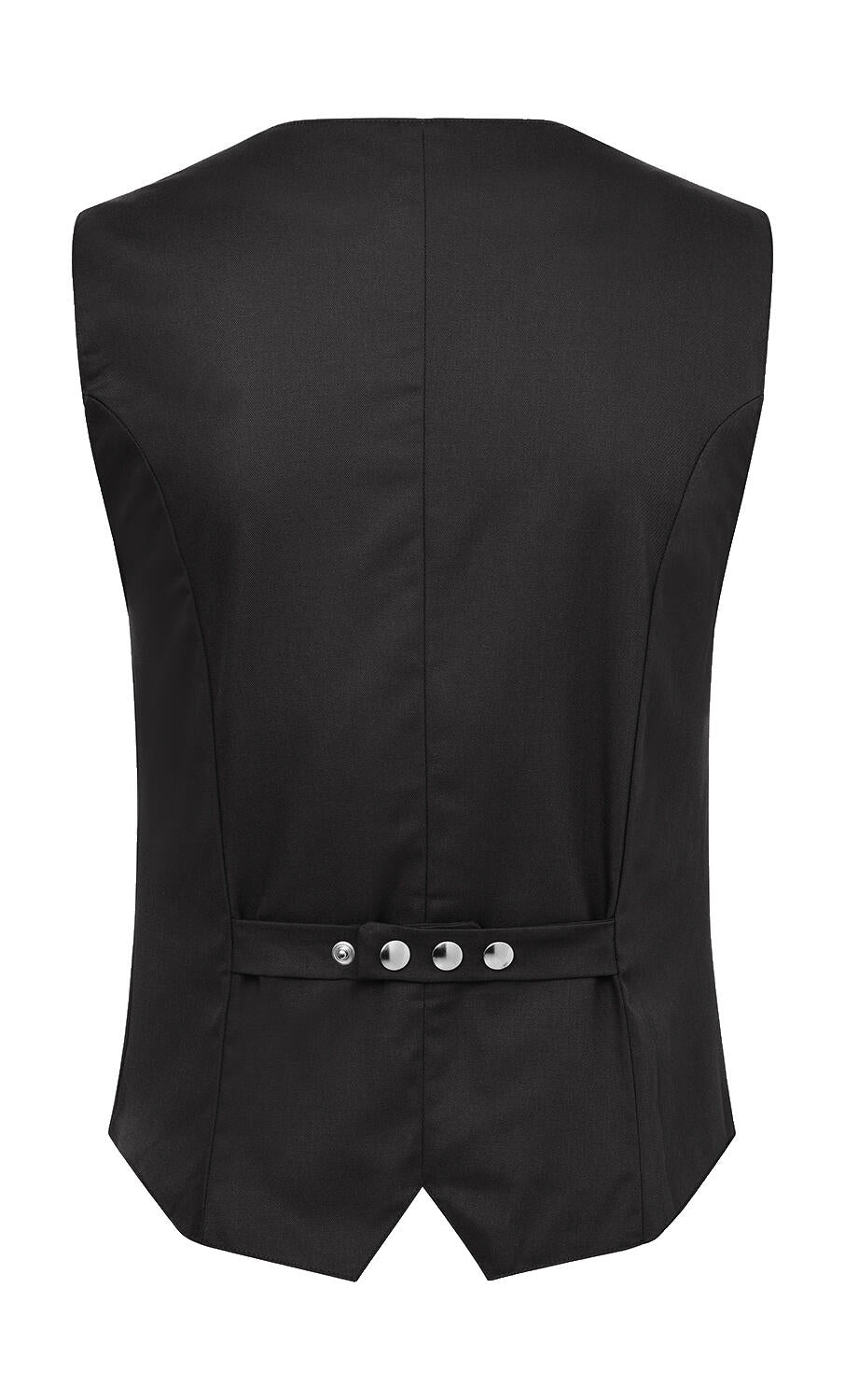 The waistcoat features a button closure with four stylish and functional snap buttons. It also has two side pockets with imitation flaps, adding a touch of sophistication to the design. The back waistband is adjustable with snap buttons, allowing for a customized fit.
