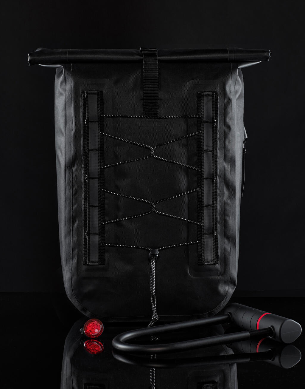 Die gepolsterten und verstellbaren Schultergurte garantieren einen angenehmen Tragekomfort, während das wasserdichte Hauptfach und die Seitentasche mit Zip ausreichend Platz für alle wichtigen Utensilien bieten. Die elastischen Befestigungsschlaufen mit reflektierenden Akzenten sorgen zudem für zusätzliche Sicherheit im Straßenverkehr.